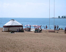 На северном побережье озера Иссык-Куль, в курортном городе Чолпон-Ата.